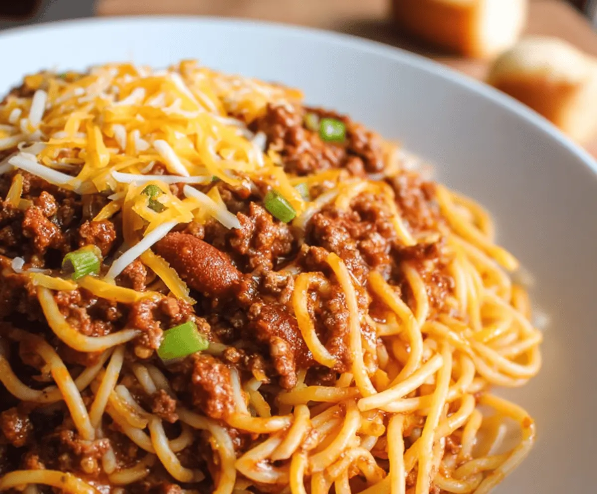 I love making chili spaghetti because it’s simple and satisfying. The chili part is packed with bold flavors and a bit of a kick, which contrasts nicely with the soft spaghetti. It’s also a great way to feed a crowd or have leftovers for the next day. Whenever I make it, I like to add a sprinkle of shredded cheese on top – it melts right into the warm chili and spaghetti, making every bite even better.