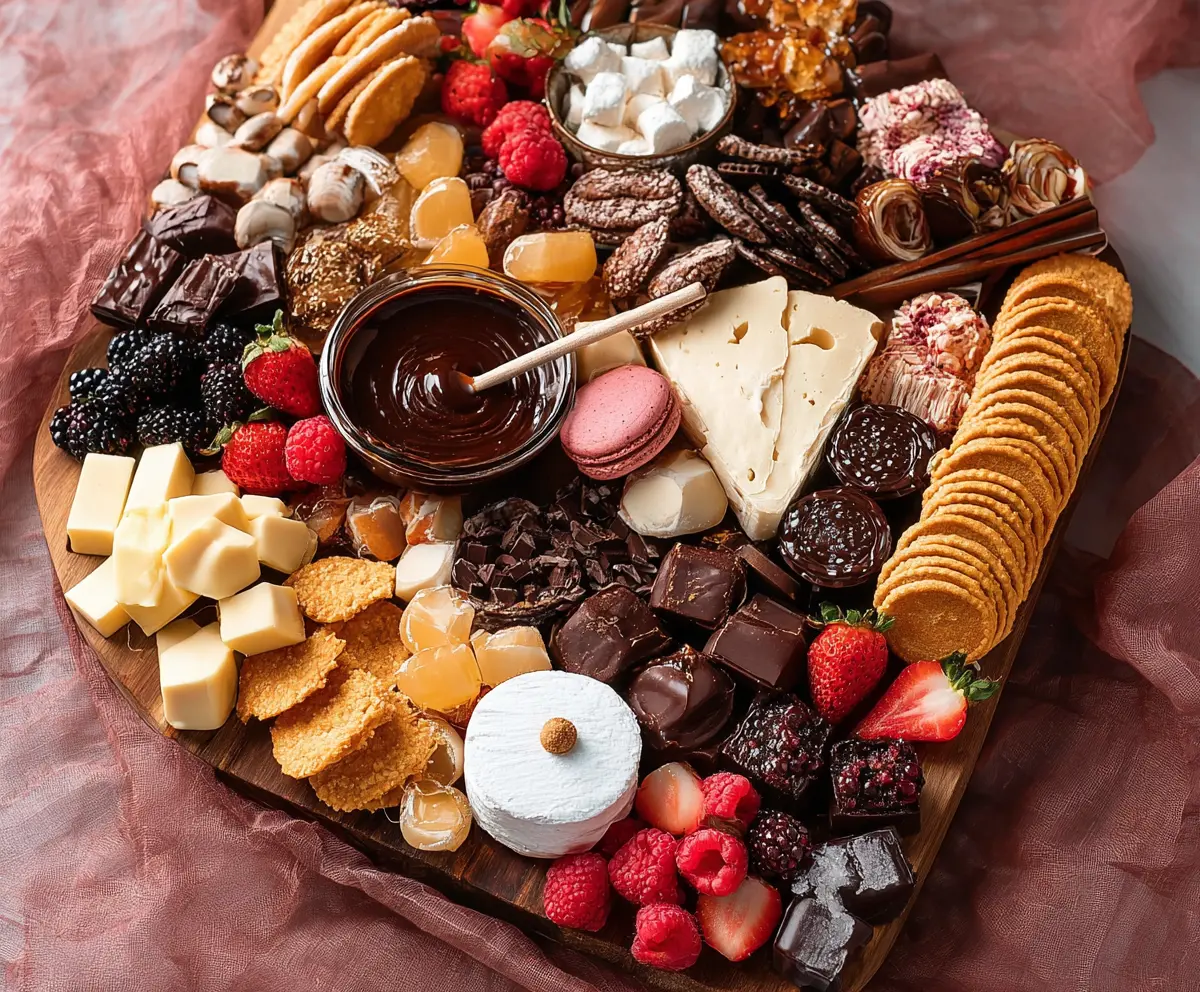 Absolutely! Use vegan cheeses, dairy-free chocolates, fruit, nuts or seeds, and vegan-friendly cookies or crackers. There are plenty of delicious plant-based treats that work beautifully for a vegan dessert charcuterie board.